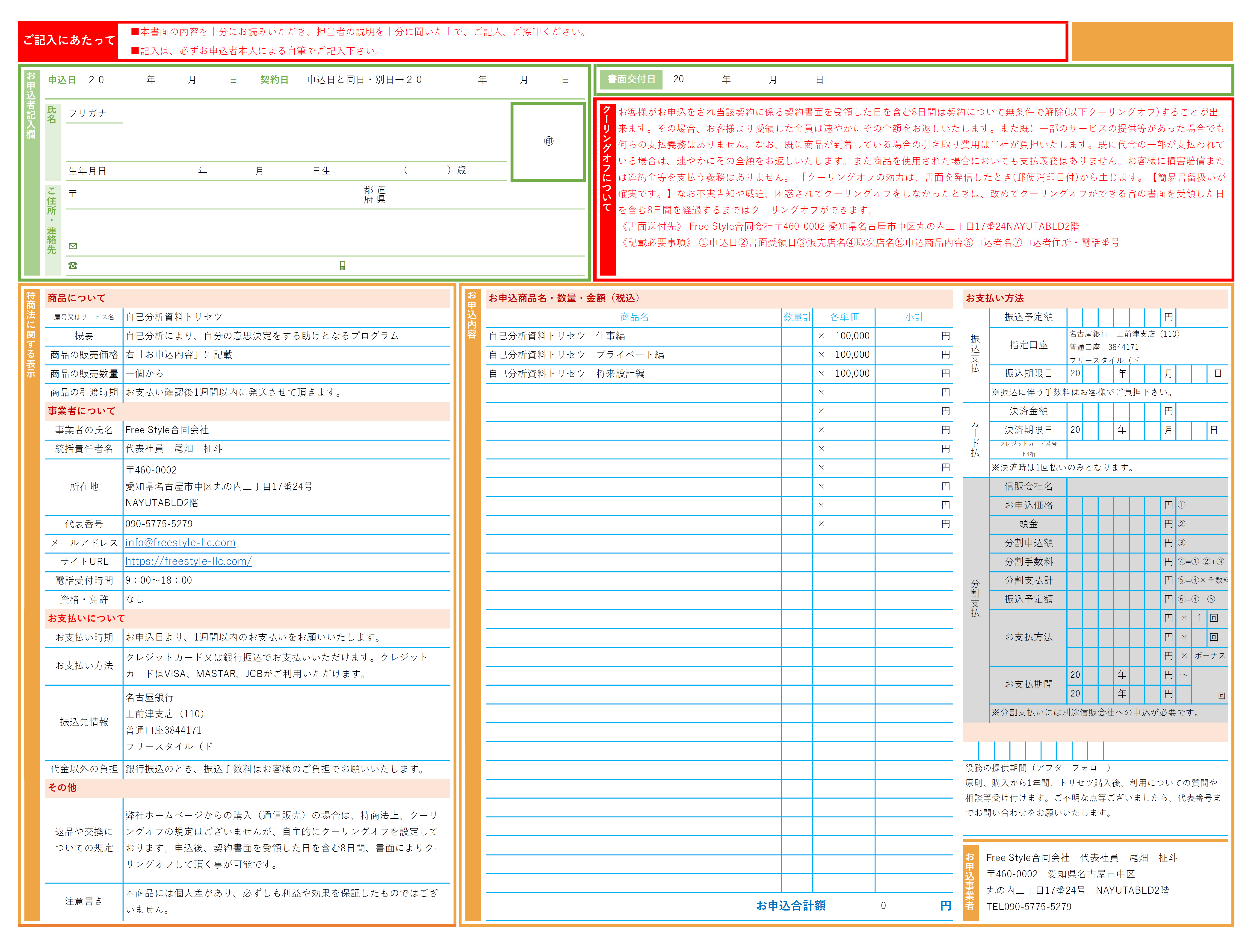 自己分析資料トリセツ購入のお申込はこちらから可能です。
